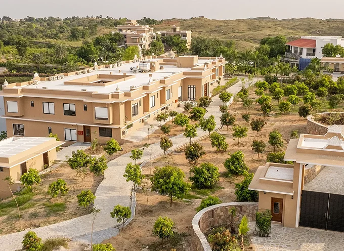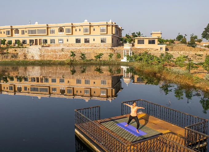 RAJBAGH – A Holistic Wellness Retreat is our sanctuary designed to transform your journey of wellness into a sustainable and long-lasting lifestyle. Nestled in the serene, pollution-free area of Batharda Kalan, Rajbagh Wellness draws inspiration from the regal architecture of Udaipur. This essence is beautifully reflected in its intricate handicrafts, luxurious fabrics, and ornate detailing, weaving their charm into every corner of the centre.